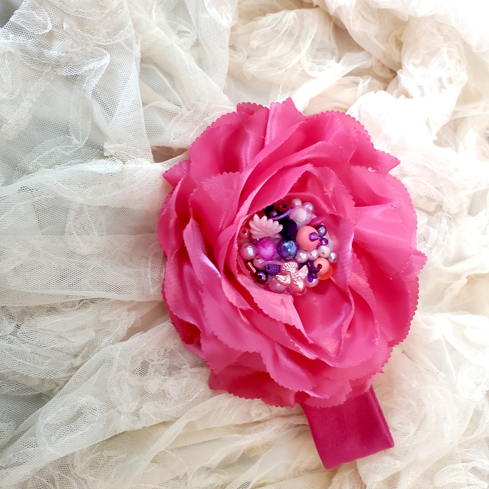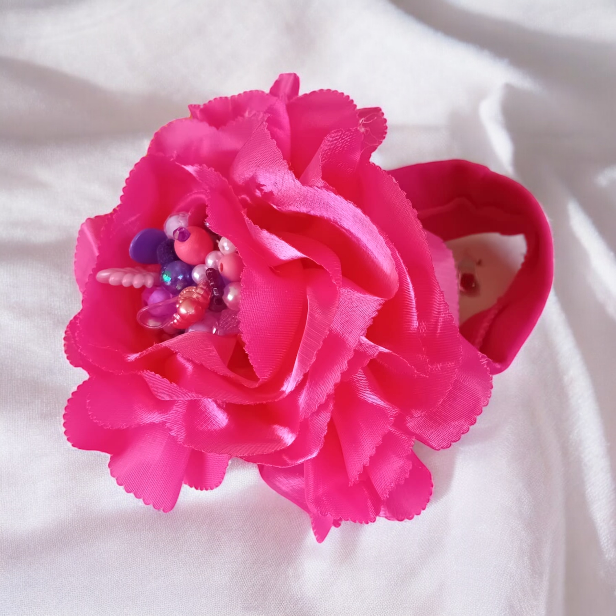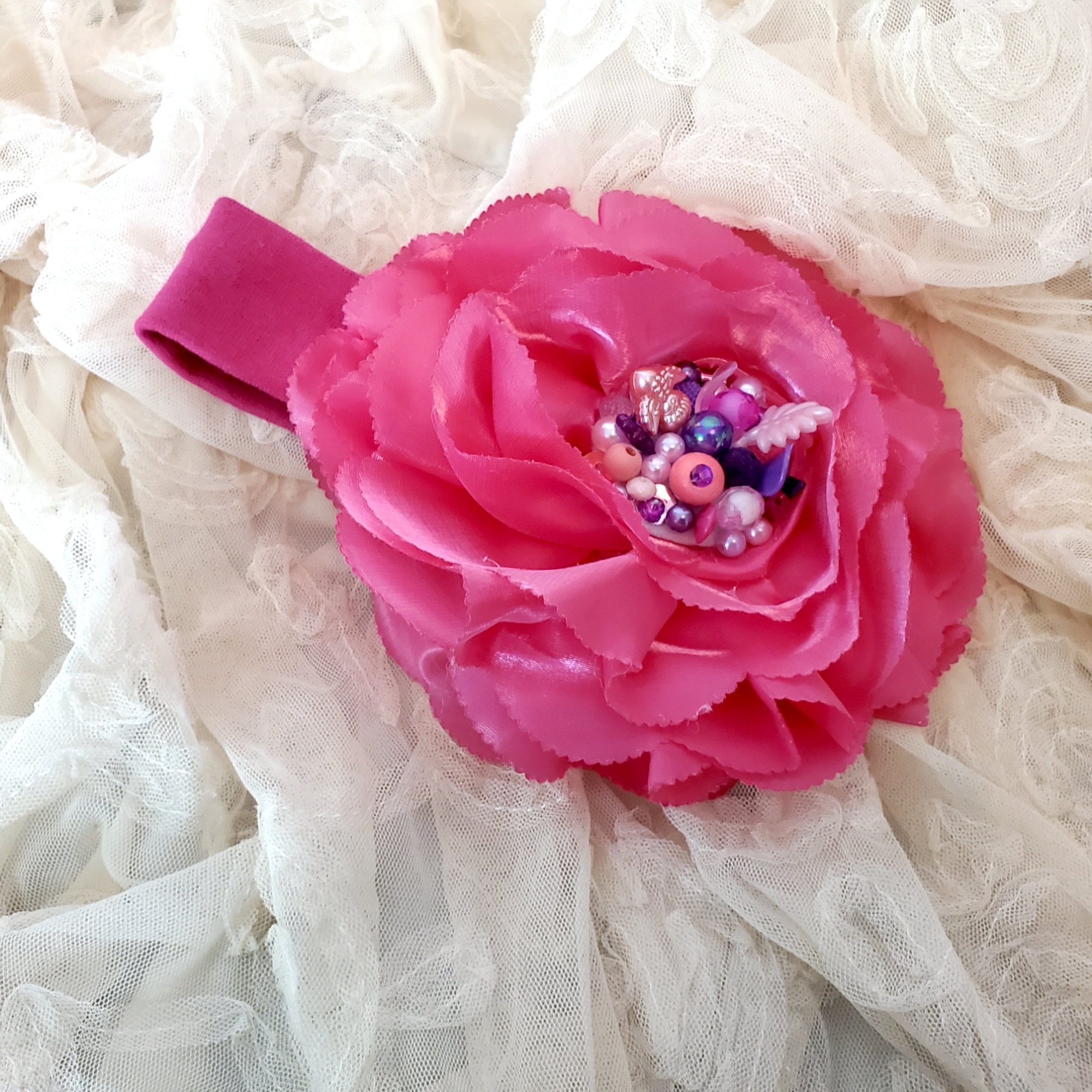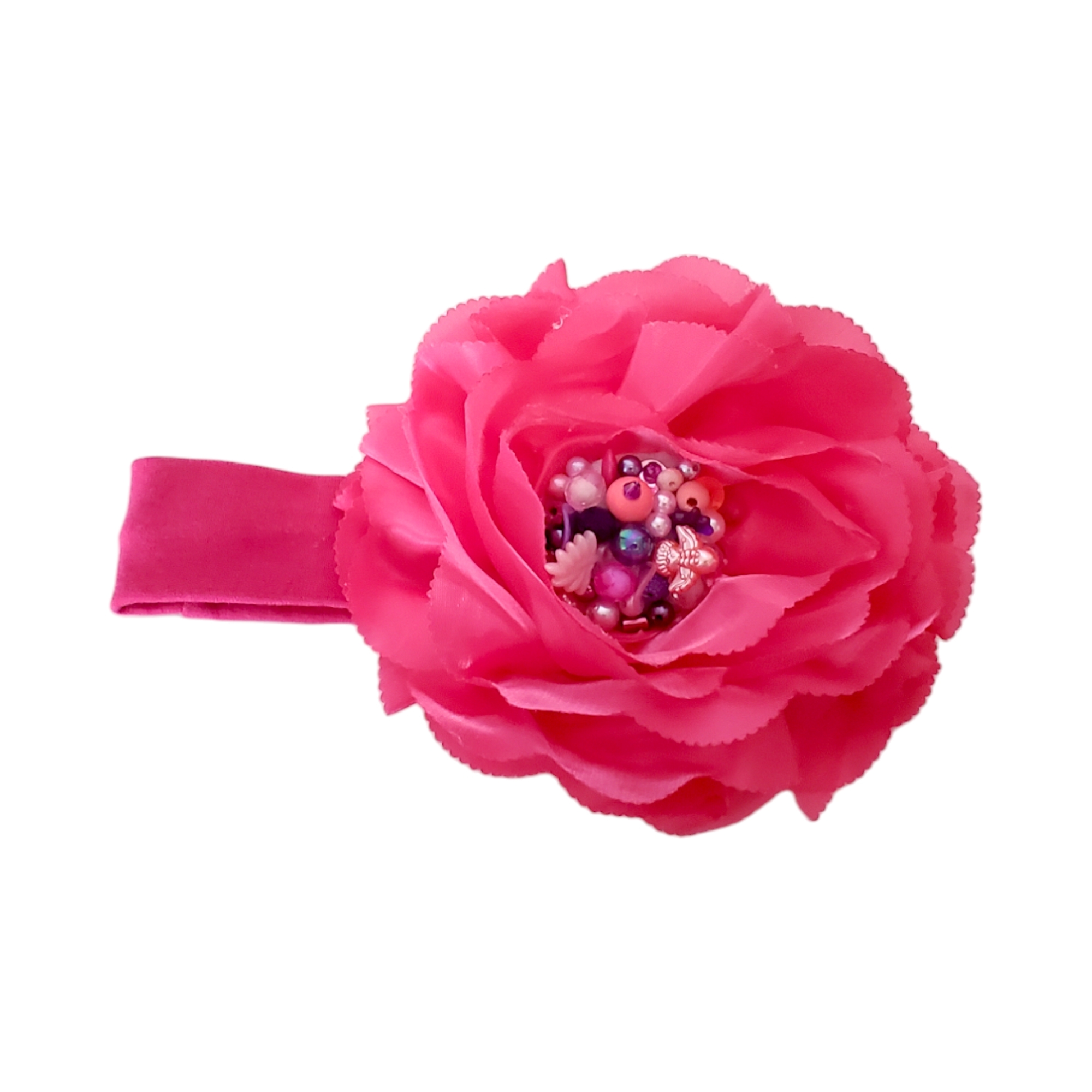Transformă fiecare zi într-o poveste cu bentita Degetica baby: moale, elastică, perfectă pentru fetițe delicate. Floarea roz supradimensionată din satin lucios și aplicațiile cusute manual aduc un strop de magie fiecărei ținute. Ușor de spălat, creată pentru momente speciale!