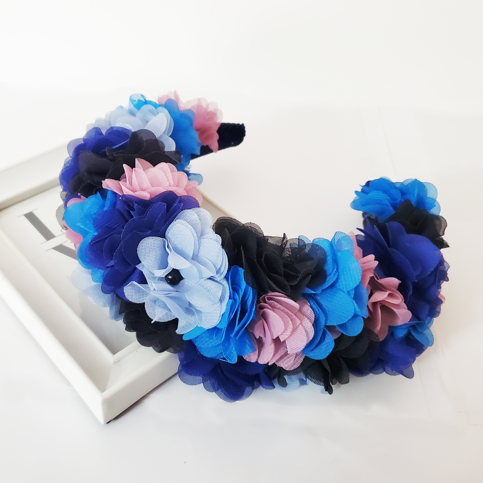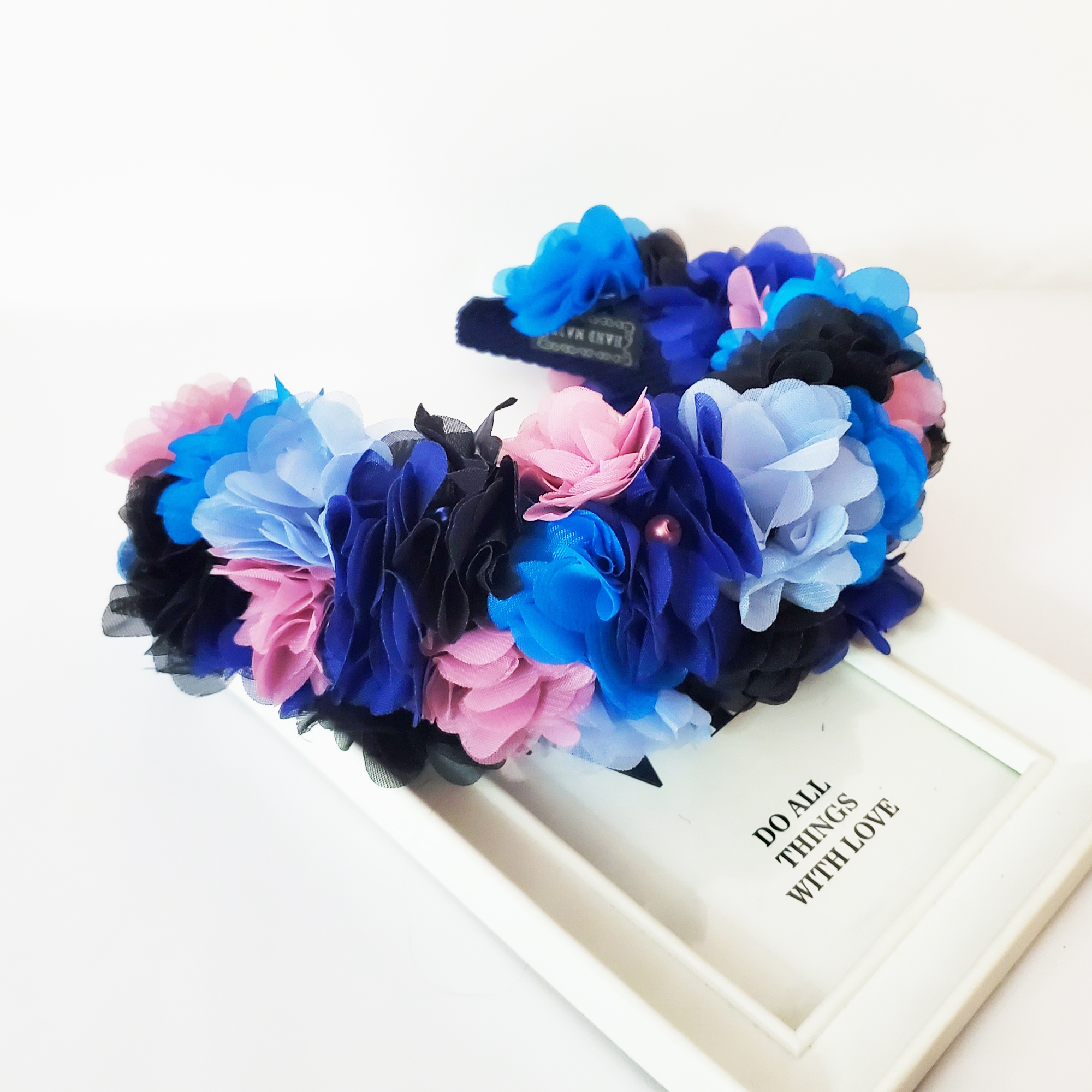 Descoperă povestea rafinamentului cu Bentita Naomi – unică, realizată manual, cu flori din tule în nuanțe de albastru, negru și mov, accentuate de perle acrilice. Catifeaua moale și suportul confortabil oferă volum și eleganță oricărei ținute, fără disconfort. Marime universală.