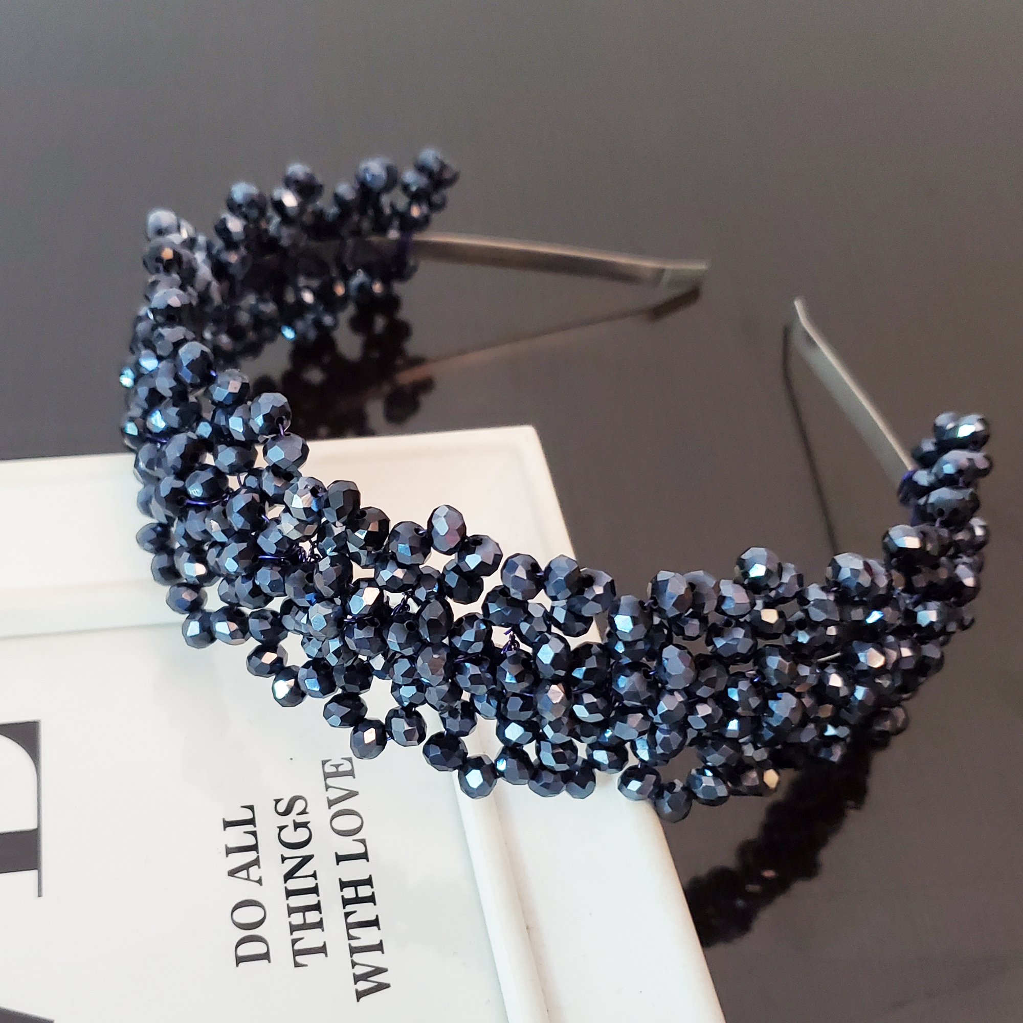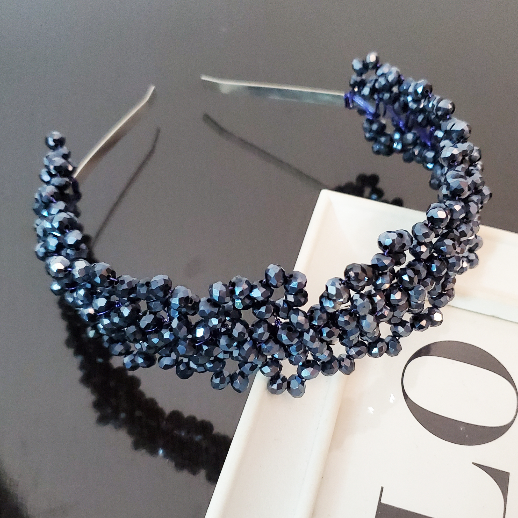 Bentita este creata asemenea unei bijuterii, cu sarma modelatoare si doar pietre de sticla albastru fumuriu. Sunt formate flori mici de ambele parti. Astfel fiecare element se poate contopi in coafura.