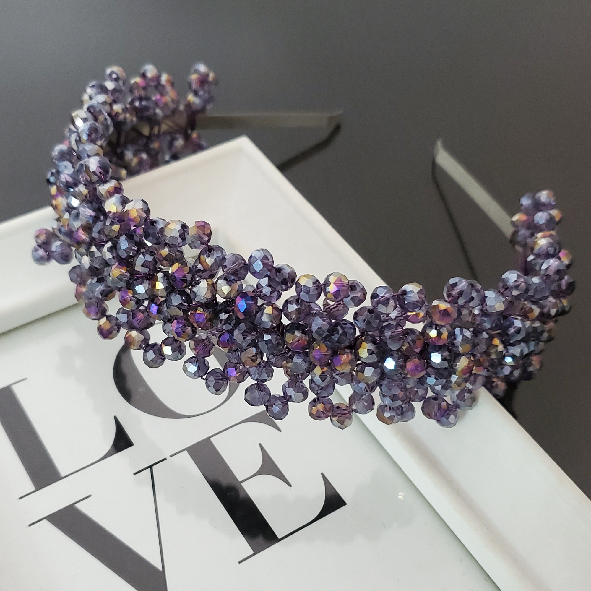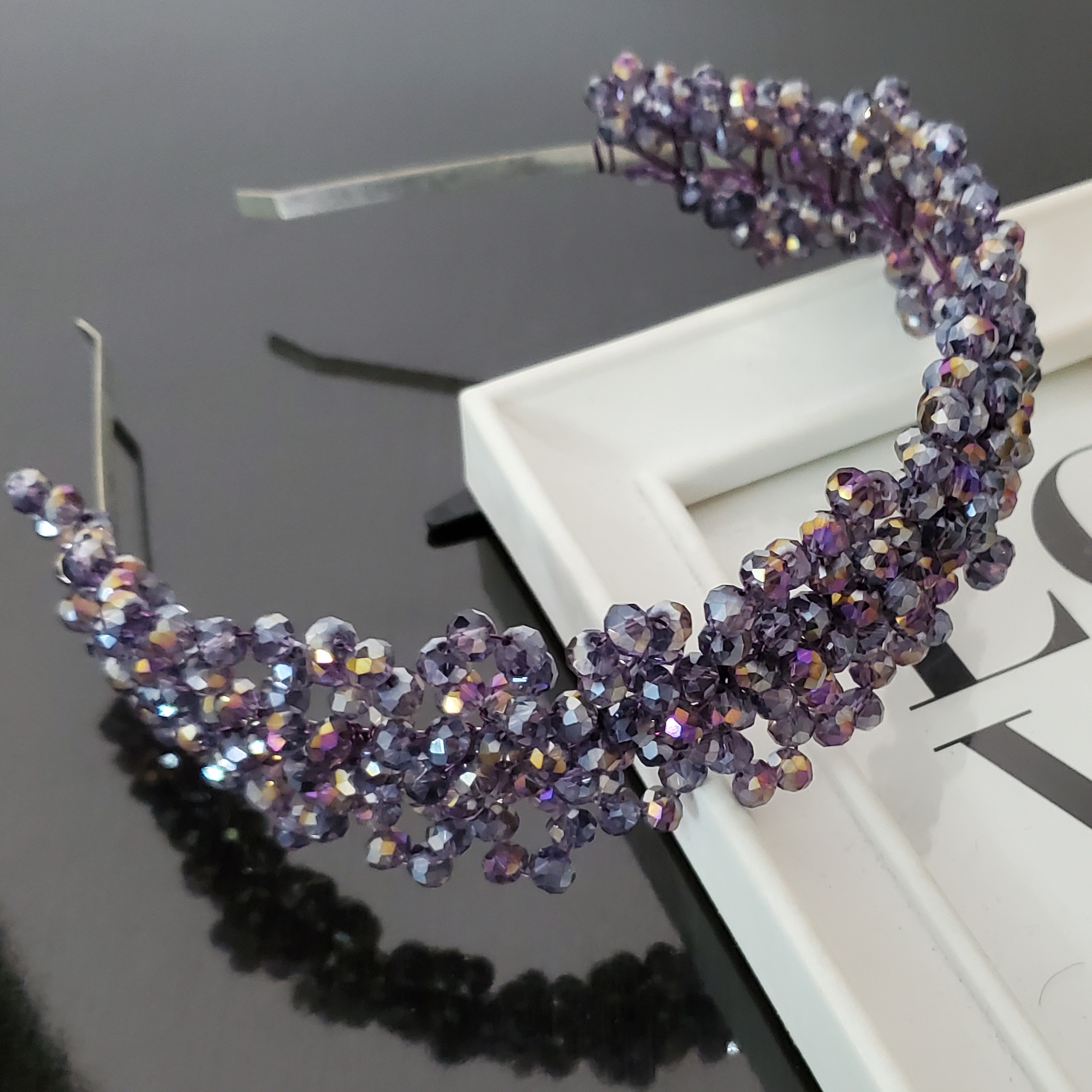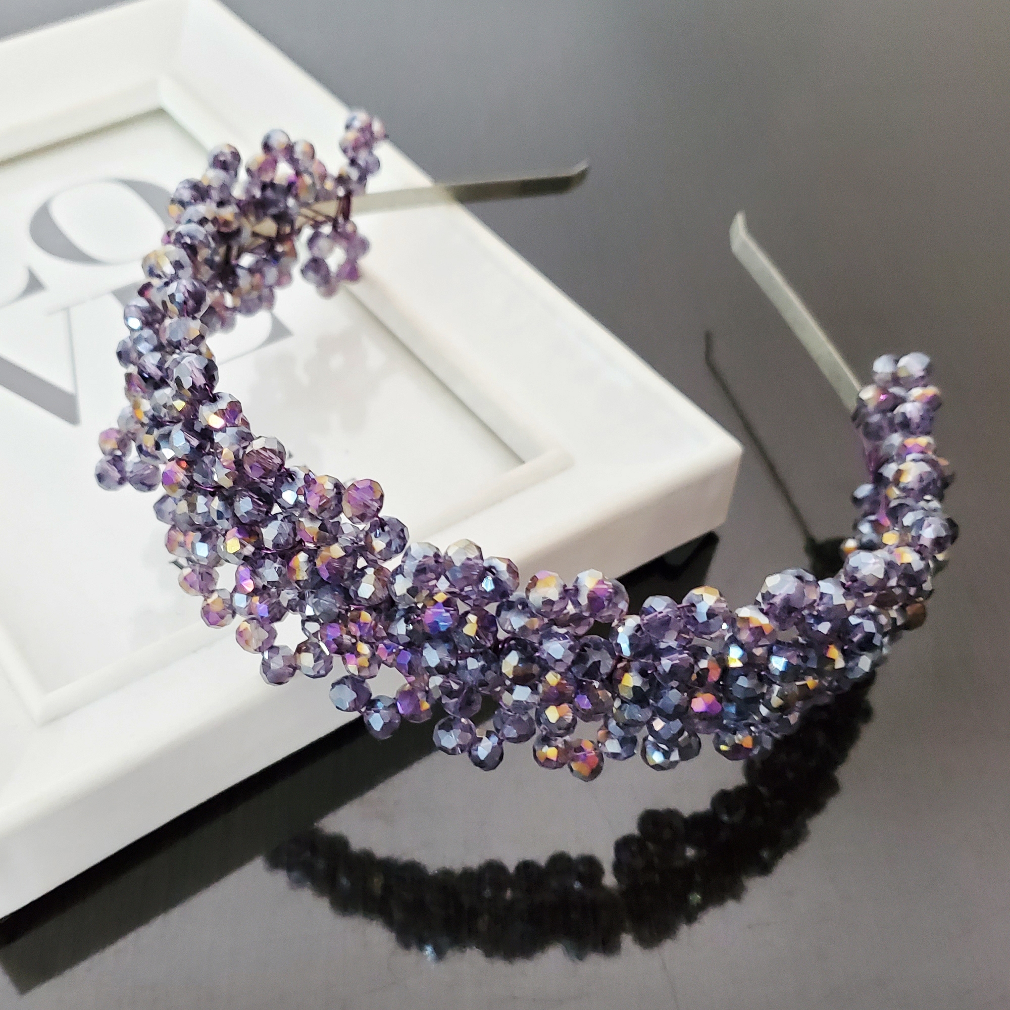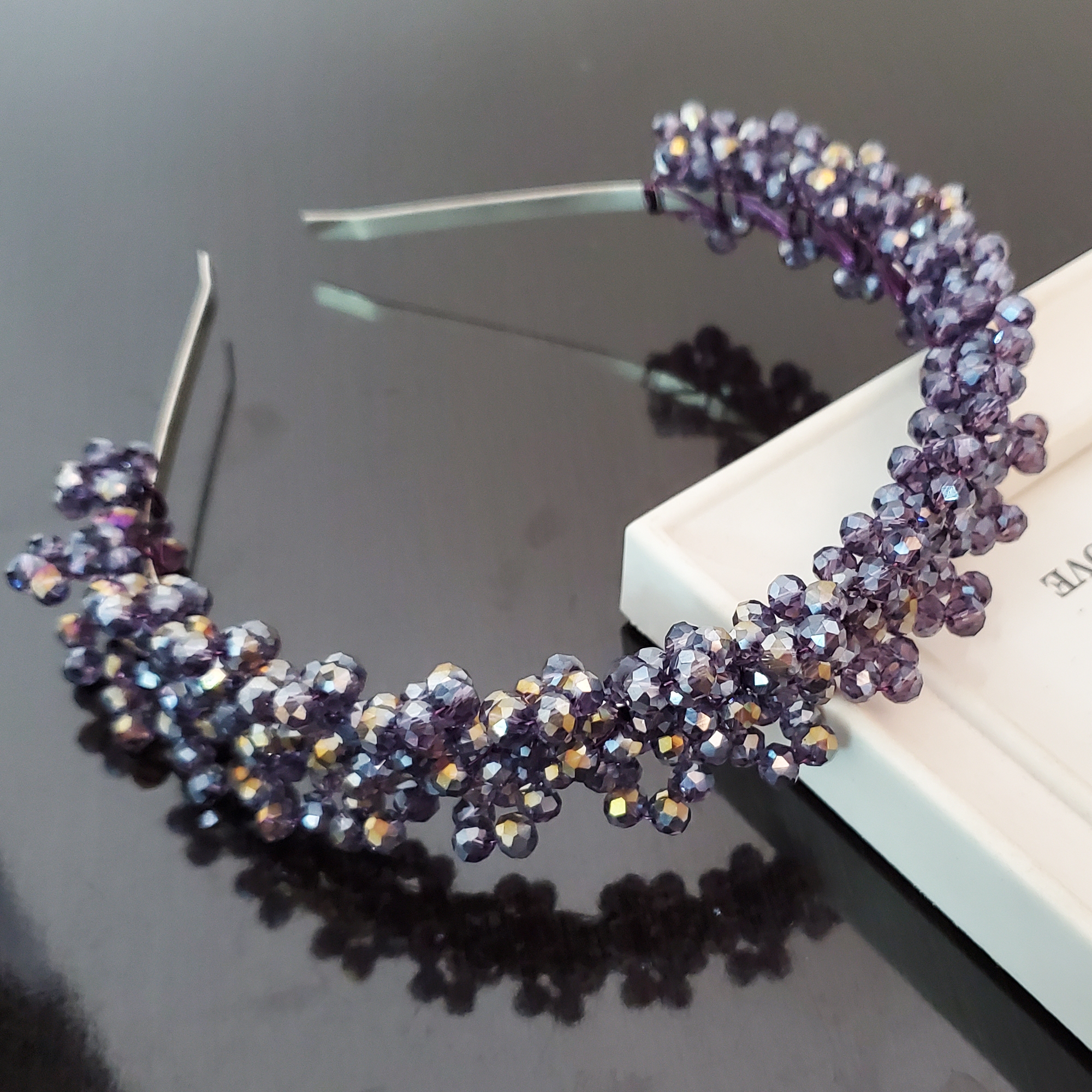 Elementele sale sunt lucrate cu atenție la detalii, fiecare floare mică fiind formată manual din sârmă modelatoare și pietre de sticlă mov cu reflexii subtile. Acest design artizanal conferă bentitei un aspect unic, delicat și sofisticat, perfect pentru momentele speciale sau pentru a adăuga un strop de magie ținutelor de zi cu zi.