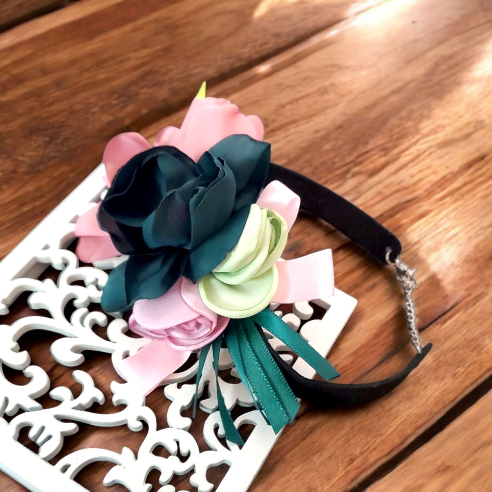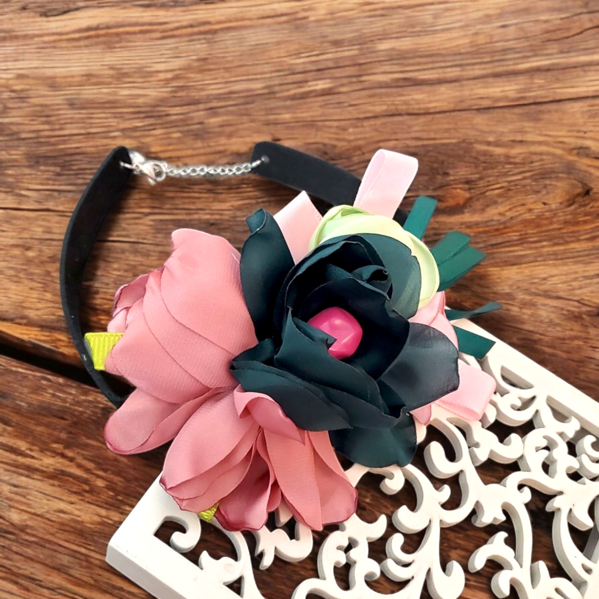 Colier tip choker cu flori din matase. Poarta povesti, nu doar accesorii