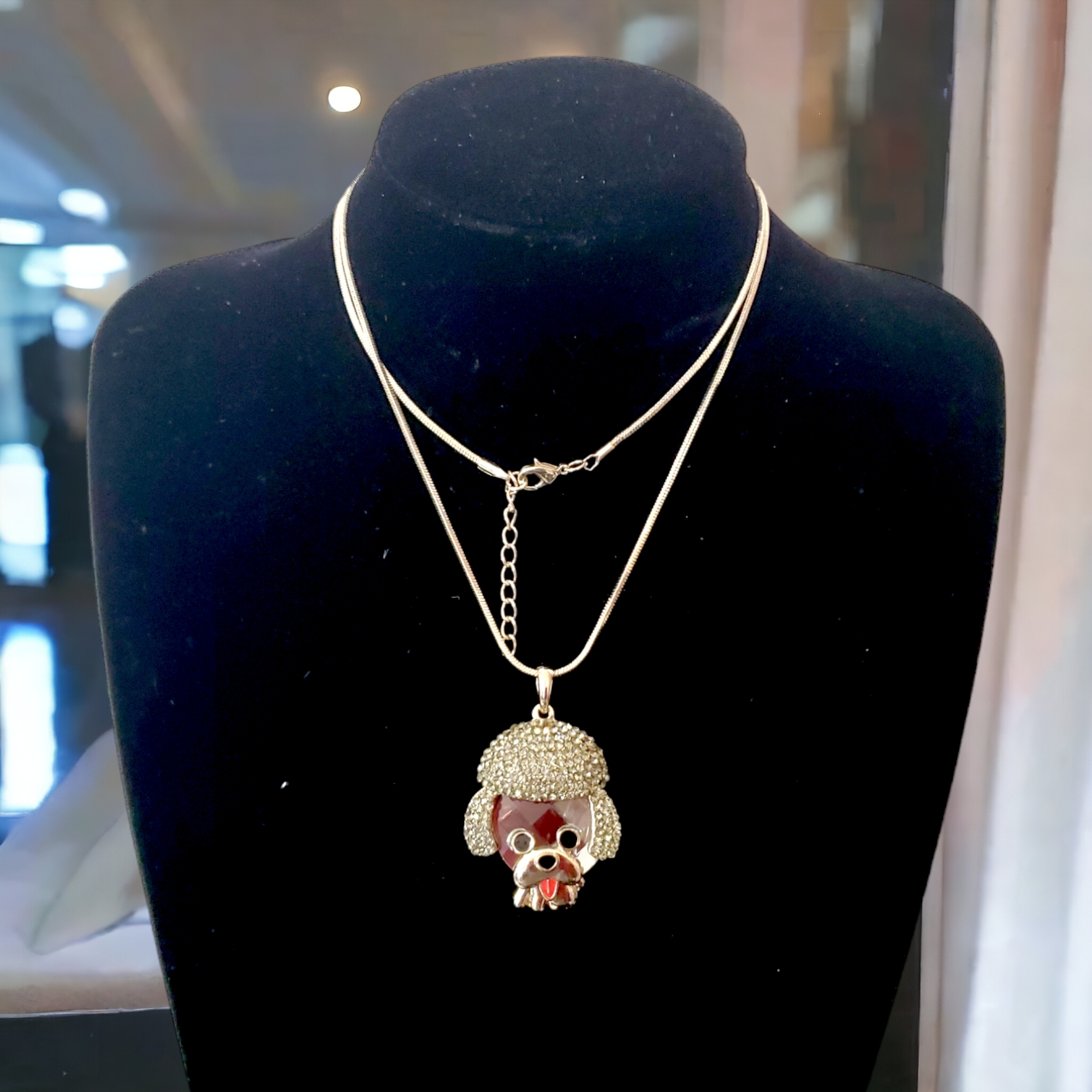 Descoperă farmecul acestui colier metalic fin, cu pandantiv 3D în formă de cățeluș decorat cu strasuri gri strălucitoare. Poartă-l lung sau dublat și adaugă o notă jucăușă și elegantă oricărei ținute. Sistem reglabil, disponibil în două culori. Perfect pentru iubitoarele de cățeluși!