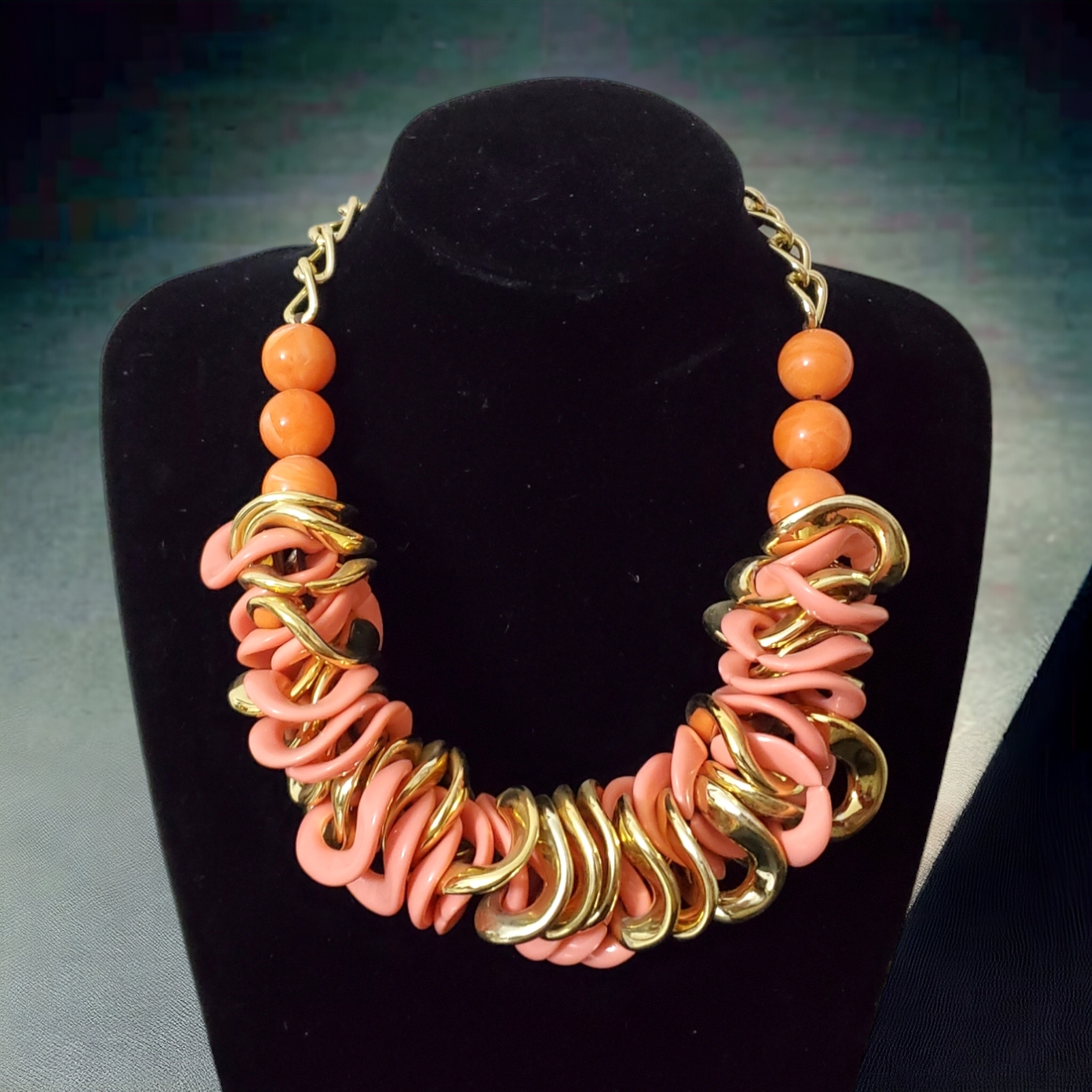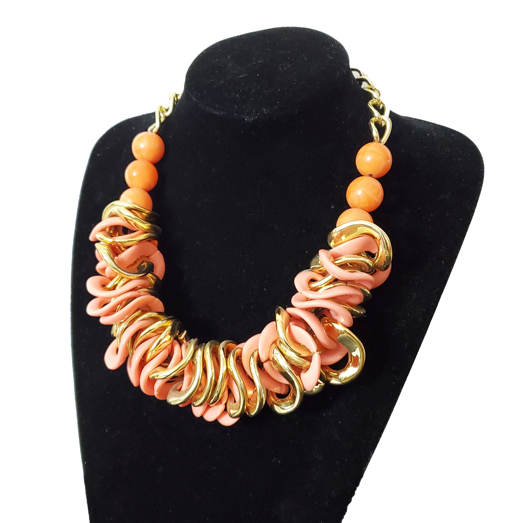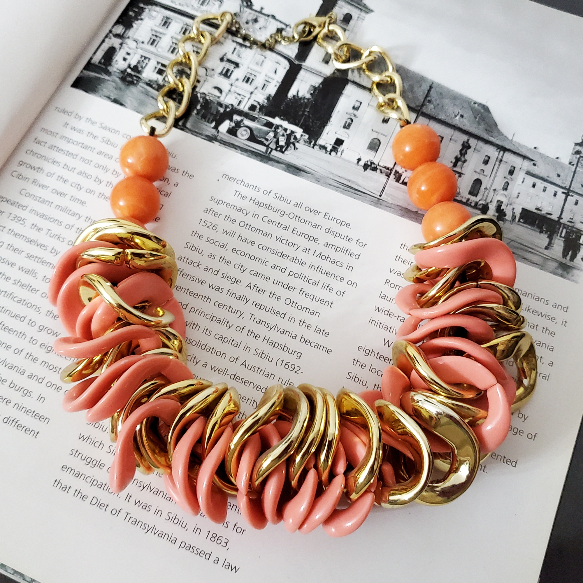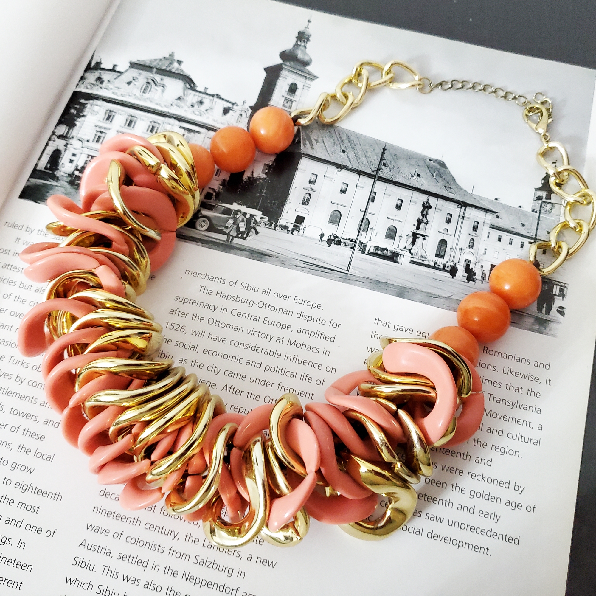 Colier in nuanta de piersica, cu perle supradimensionate. Poarta povesti, nu doar accesorii