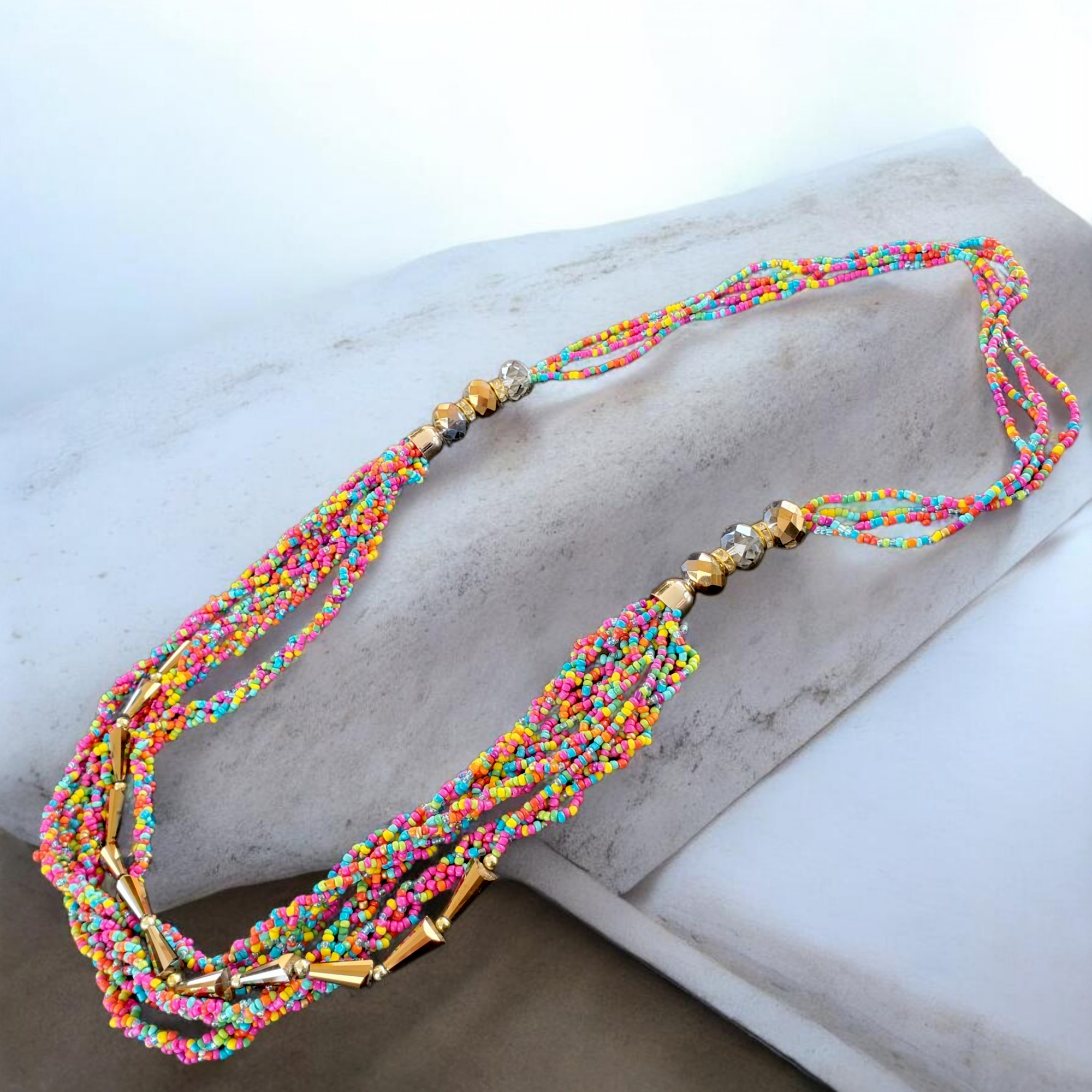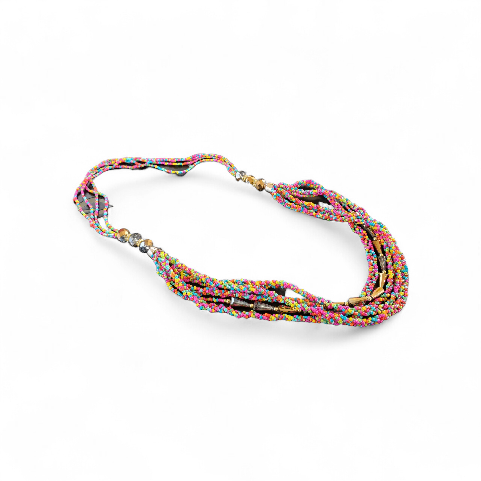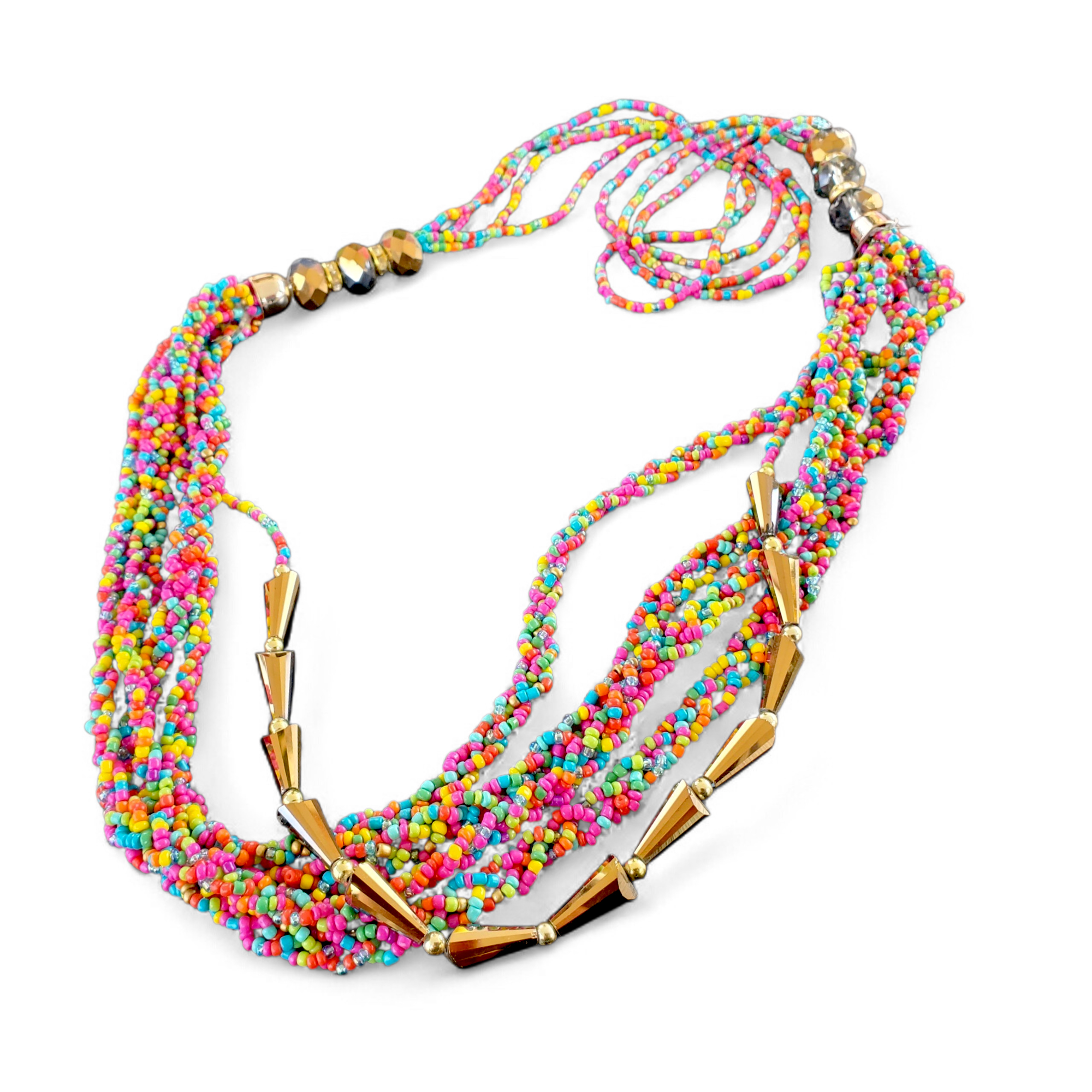 Colier de zi in culori vibrante, din margelute Toho si cristale de sticla.