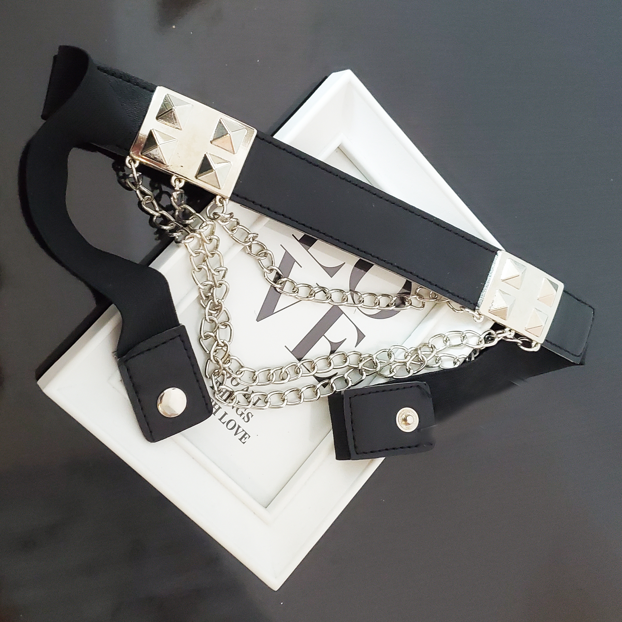 Curea de talie cu lanturi eleganta cu inchidere la spate. Curelele se regasesc in orice tip vestimentar, putand accesoriza atat stilul casual, office, cat si cel elegant