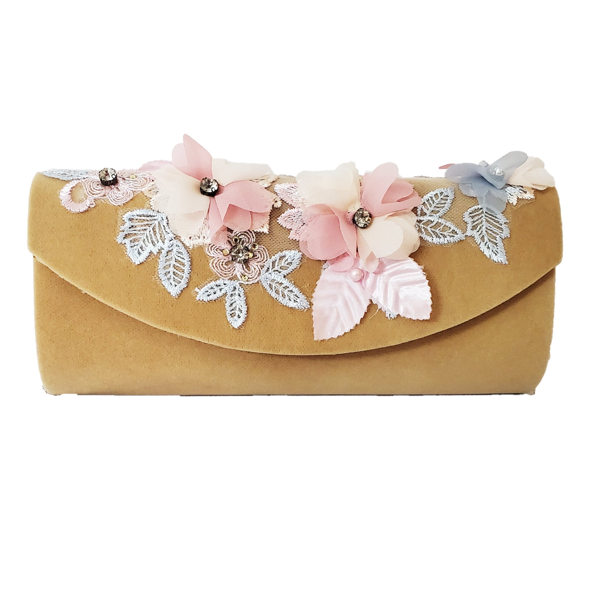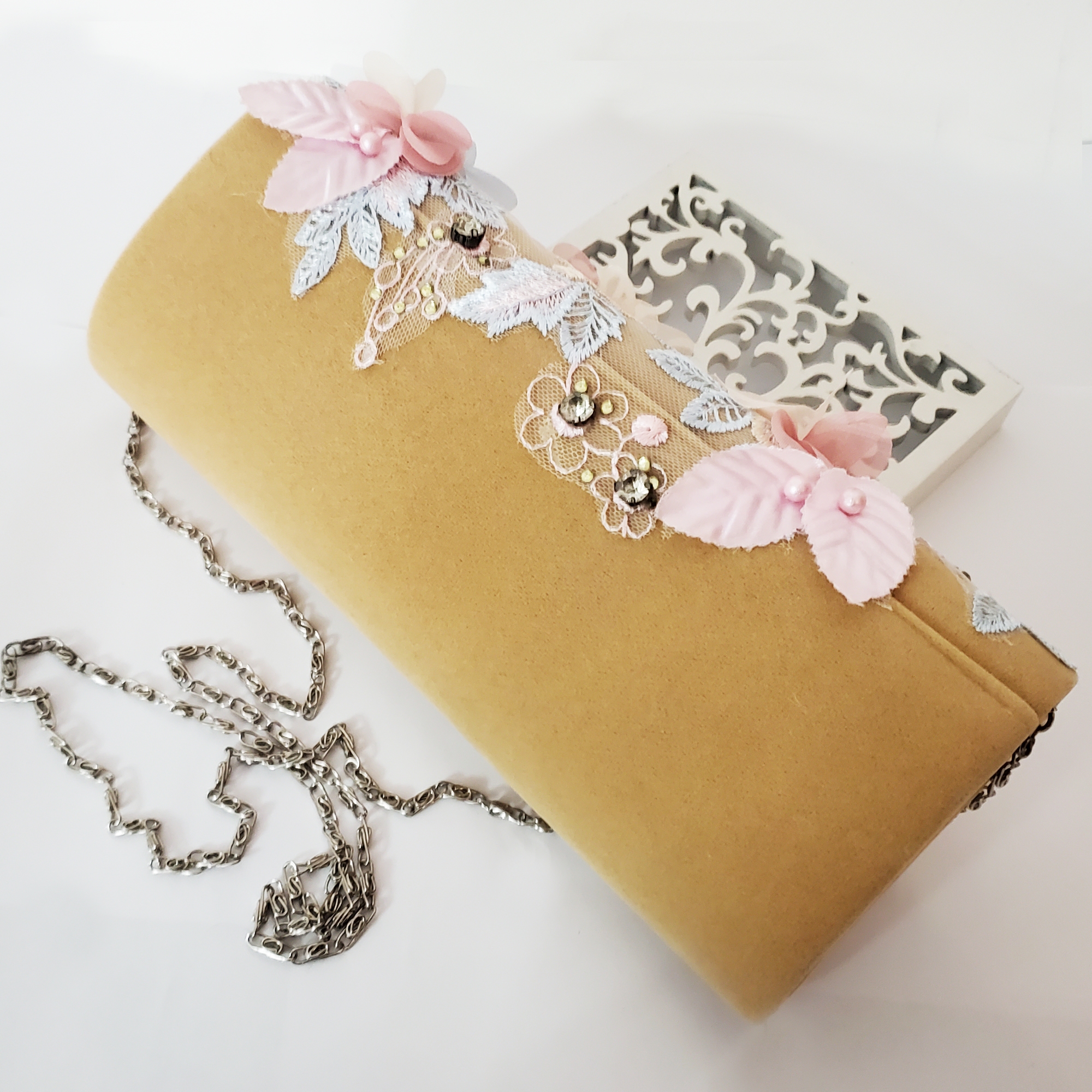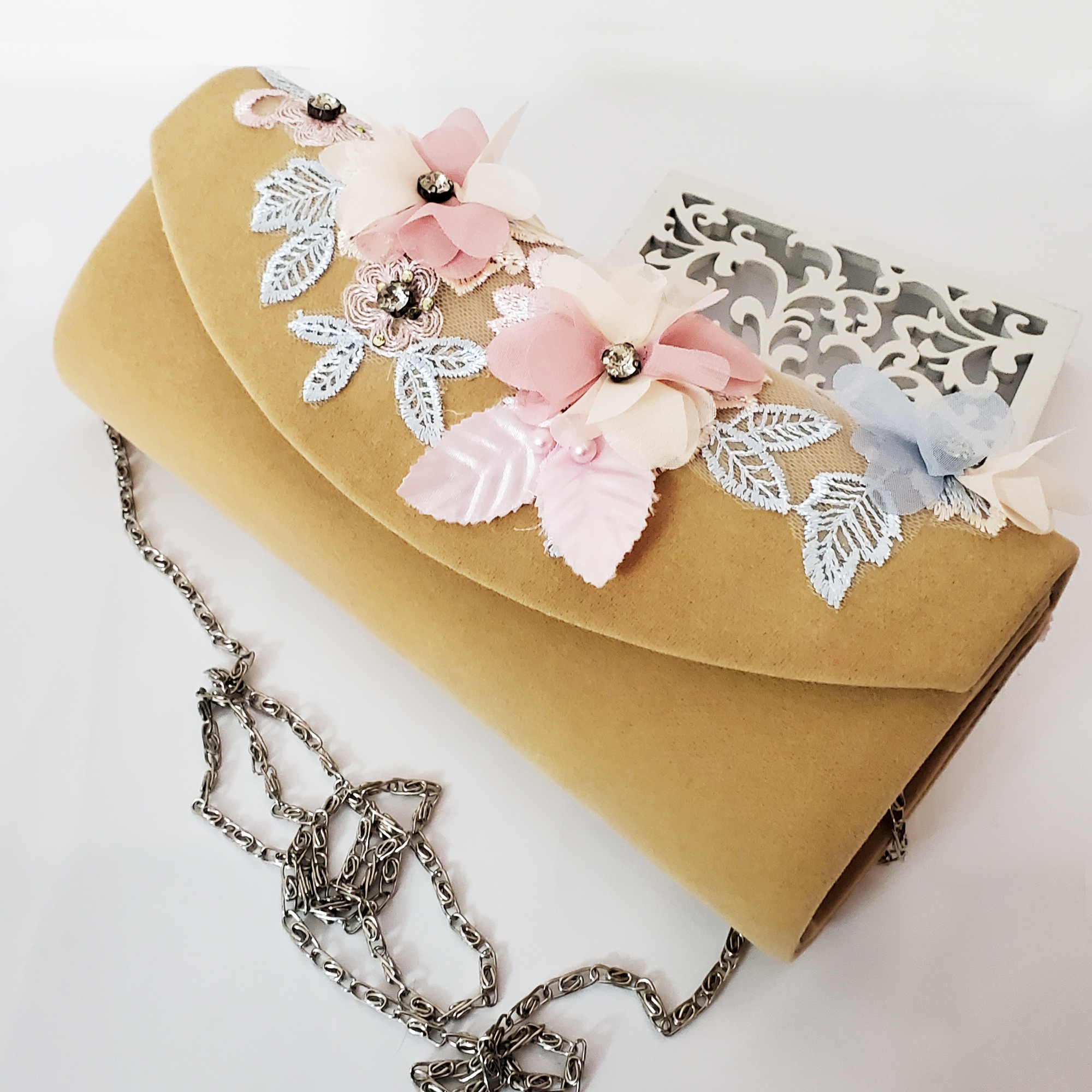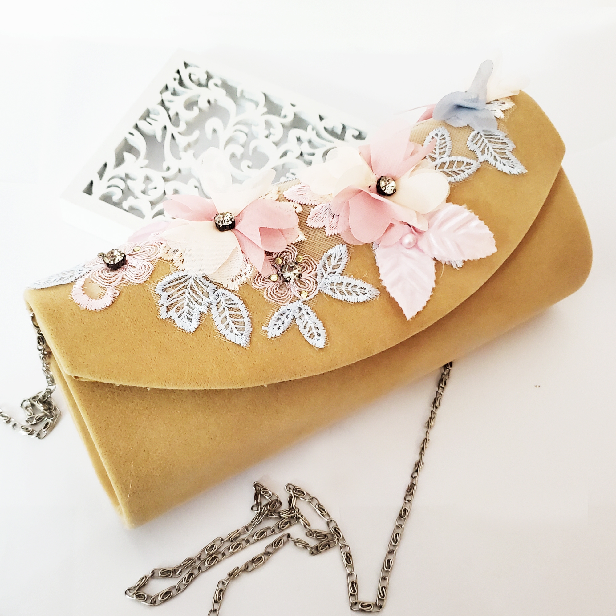 Geanta aeste confectionata din catifea crem, cu design unic si irepetabil.